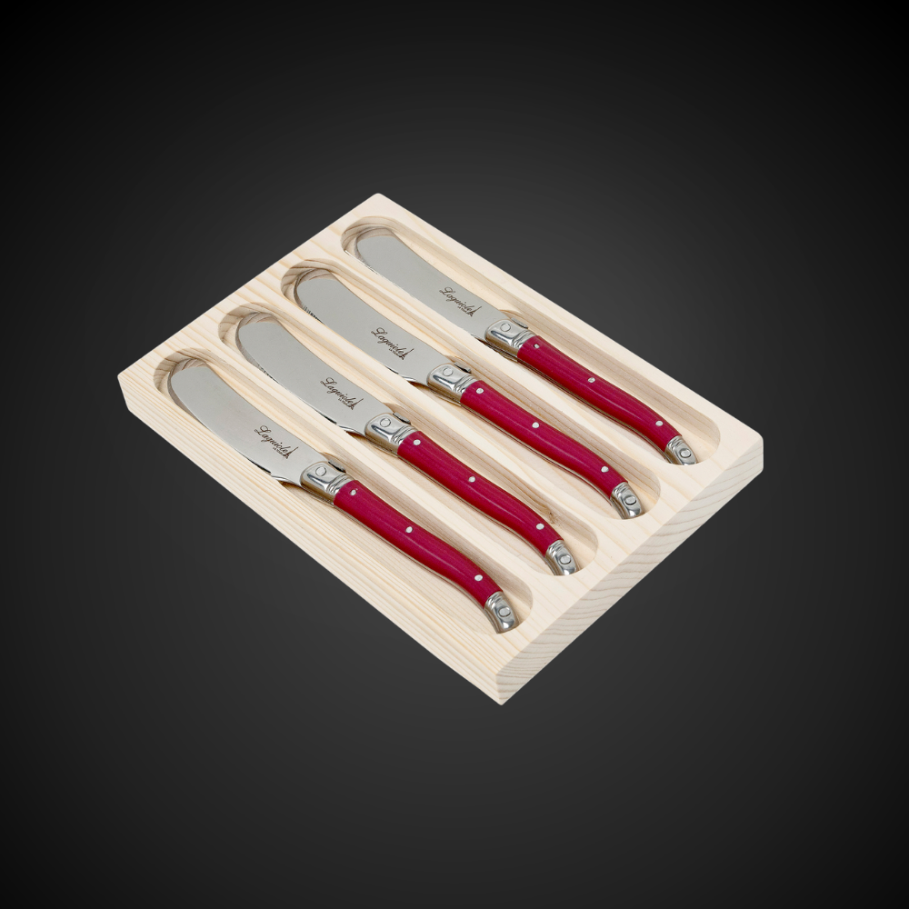 Conjunto 4 Facas Laguiole Luxo Para Manteiga Em Bandeja De Madeira, Bordeaux