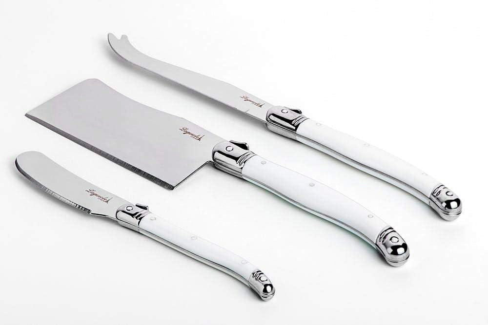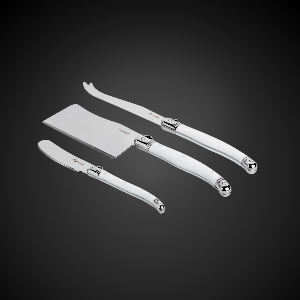 Conjunto De 3 Facas Laguiole Luxo Para Queijo Em Bandeja De Madeira, Branco