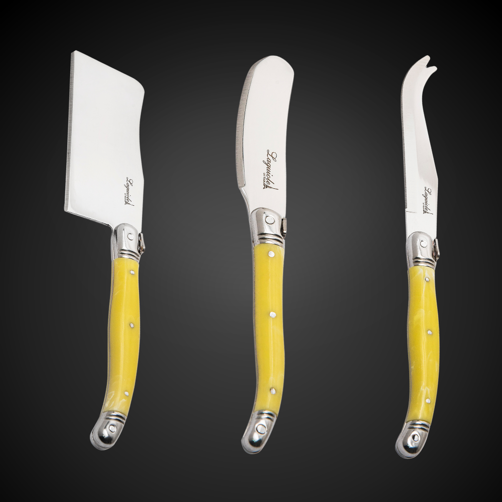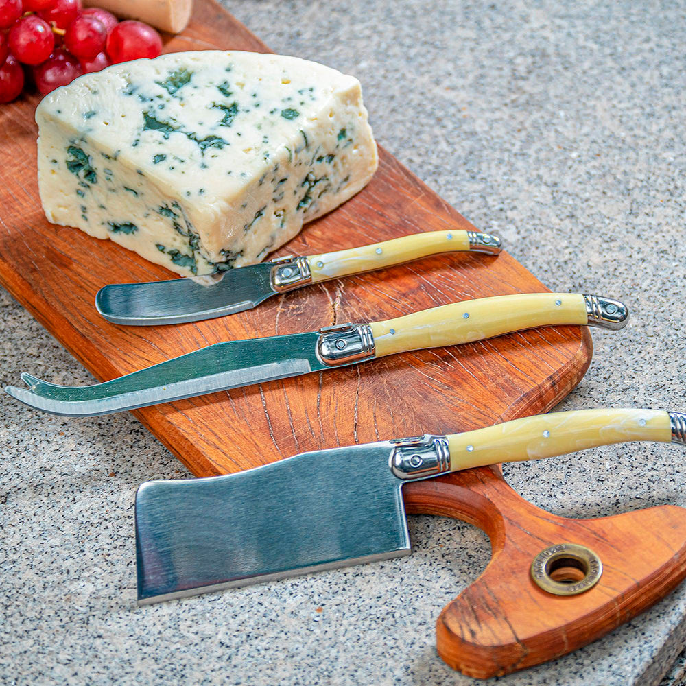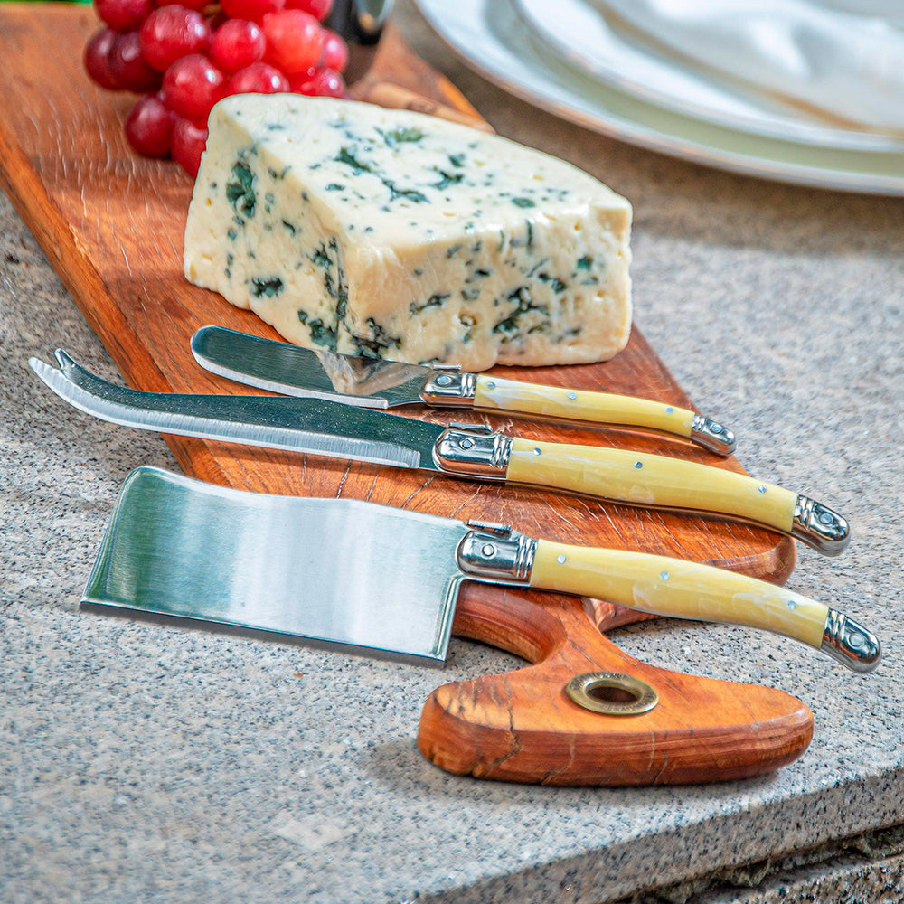 Conjunto De 3 Facas Laguiole Luxo Para Queijo Em Bandeja De Madeira, Marfim