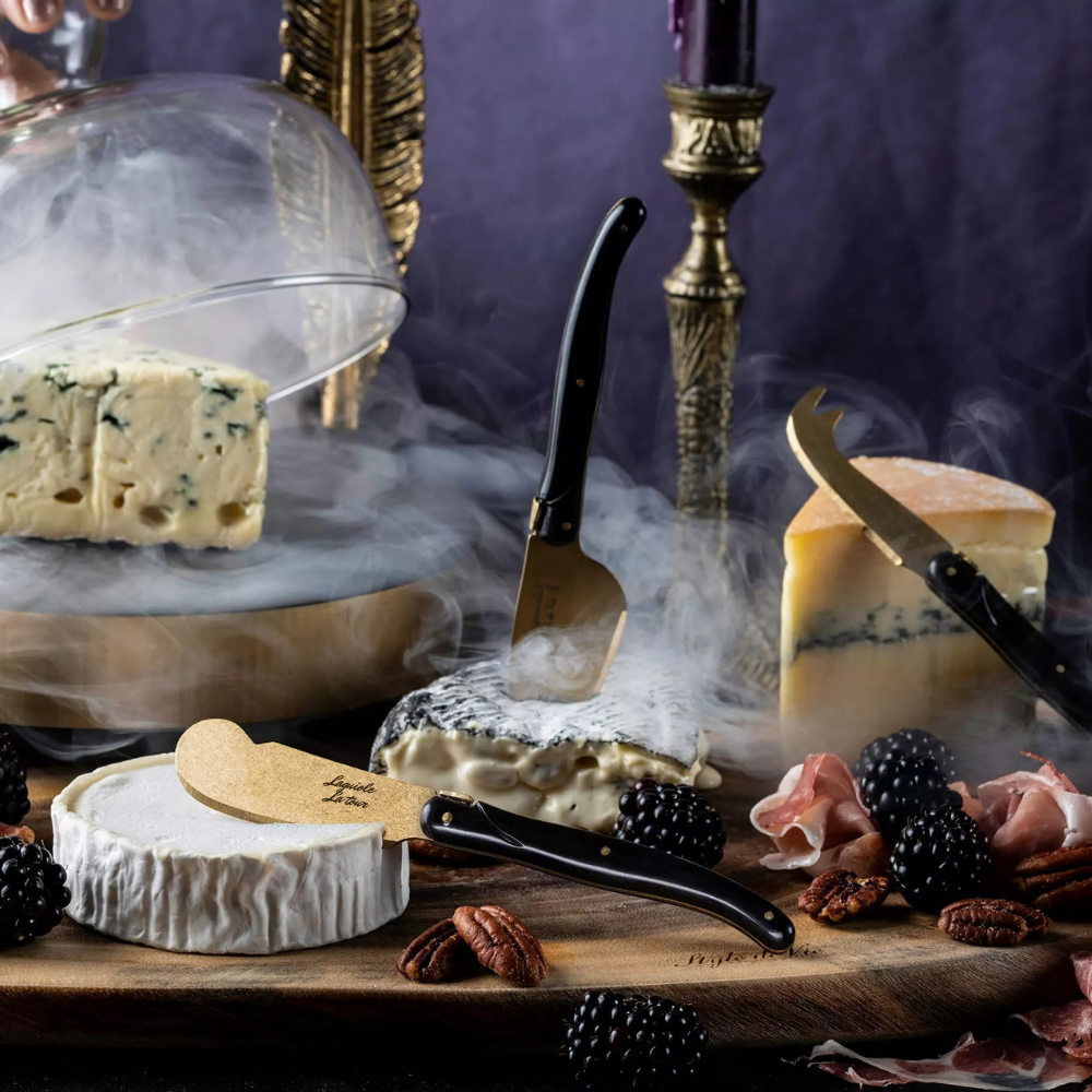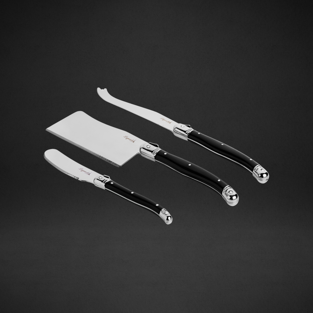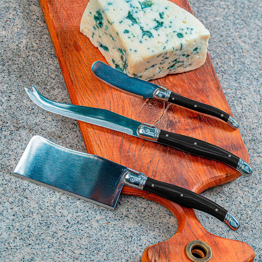 Conjunto De 3 Facas Laguiole Luxo Para Queijo Em Bandeja De Madeira, Preto