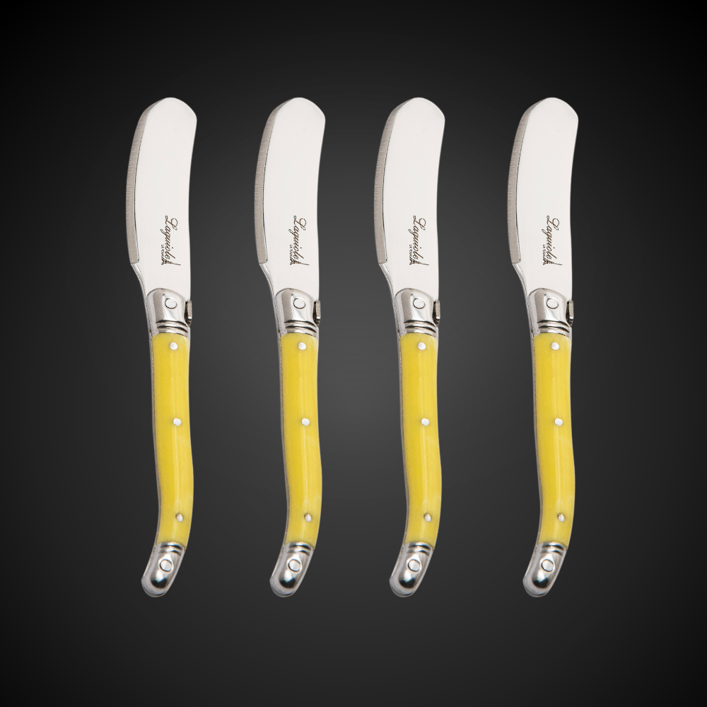 Conjunto De 4 Facas Laguiole Luxo Para Manteiga Em Bandeja De Madeira, Marfim