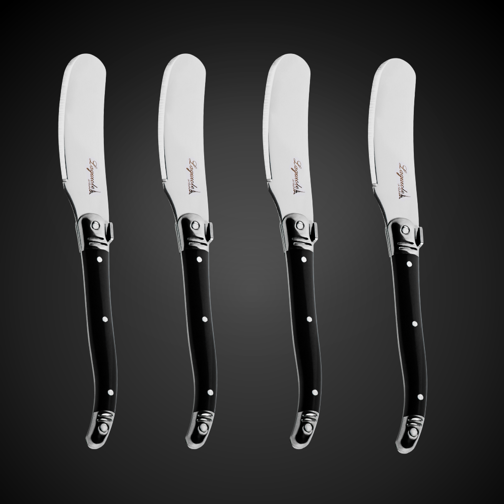Conjunto De 4 Facas Laguiole Luxo Para Manteiga Em Bandeja De Madeira, Preto