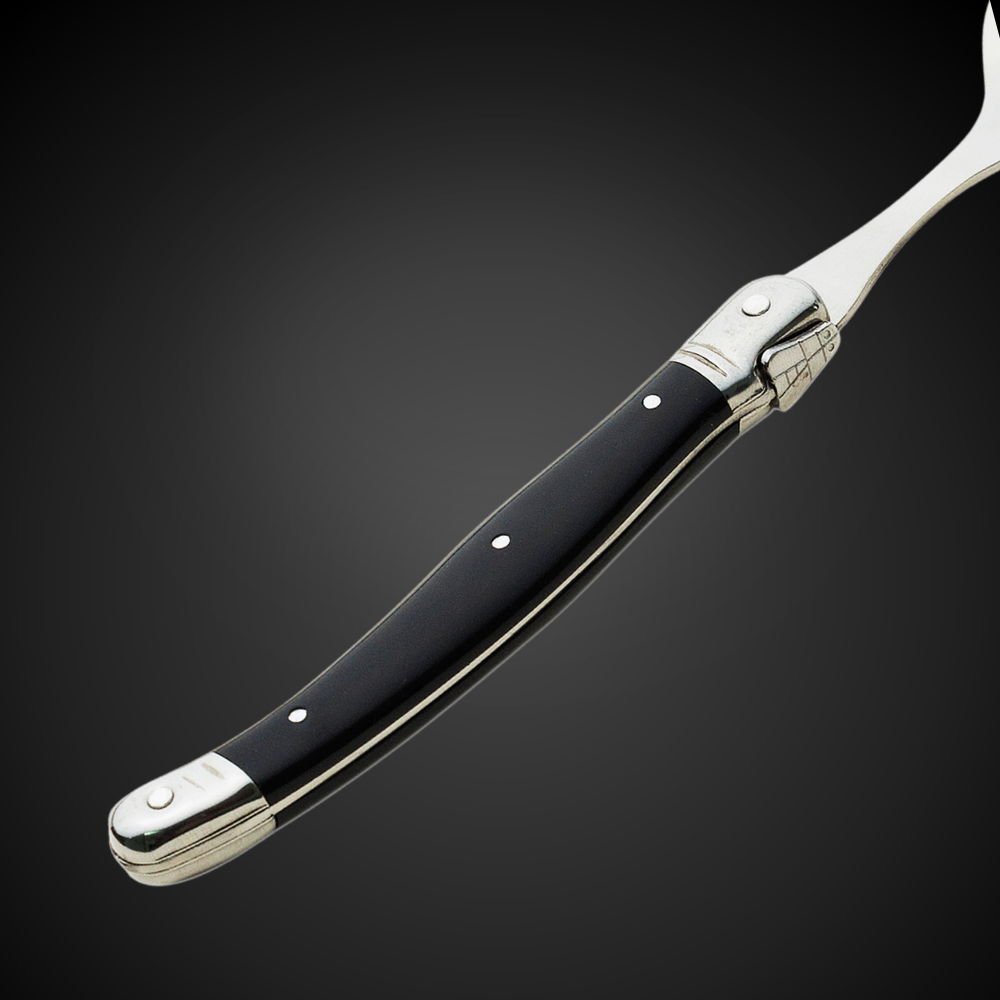Feitos em aço inoxidável de altíssima qualidade, os garfos Laguiole são extremamente robustos e resistentes ao uso diário, sem deformações. O cabo em ABS oferece uma pegada confortável e bem equilibrada, ideal para diferentes tipos de refeições, do cotidiano a ocasiões especiais. Seu design clássico e atemporal adiciona sofisticação à mesa e combina com qualquer estilo de serviço.