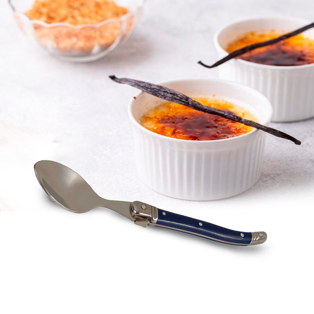 Conjunto De 6 Colheres Sobremesa Laguiole Luxo Em Bandeja De Madeira, Azul