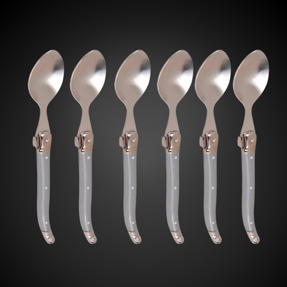 Conjunto De 6 Colheres Sobremesa Laguiole Luxo Em Bandeja De Madeira, Cinza