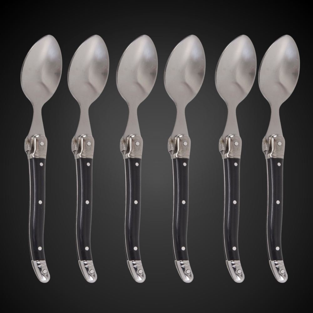 Conjunto De 6 Colheres Sobremesa Laguiole Luxo Em Bandeja De Madeira, Preto Laguiole