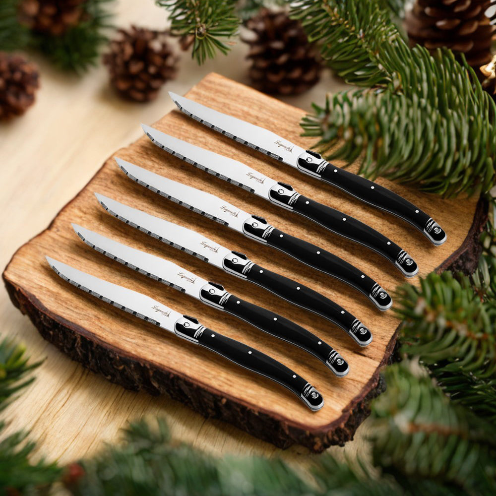Conjunto De 6 Facas Laguiole Luxo Com Cepo De Madeira, Preto