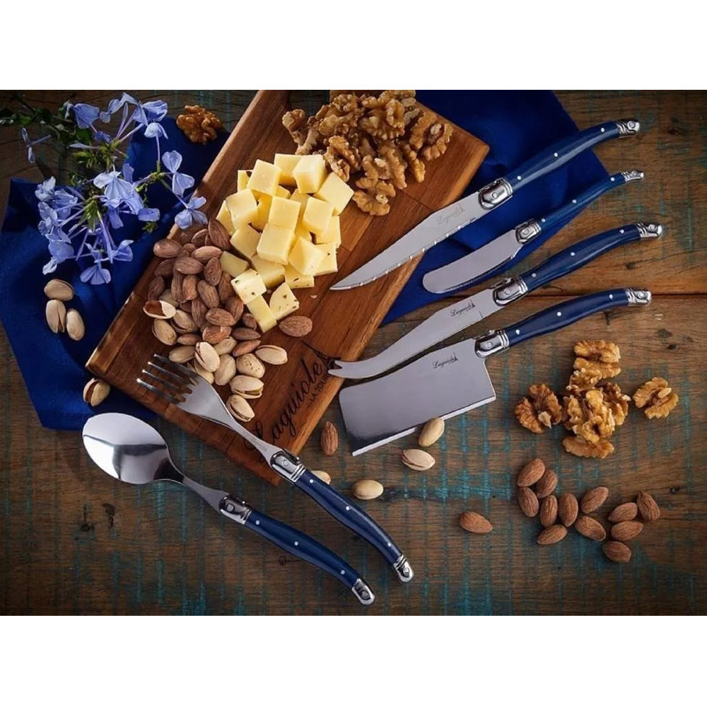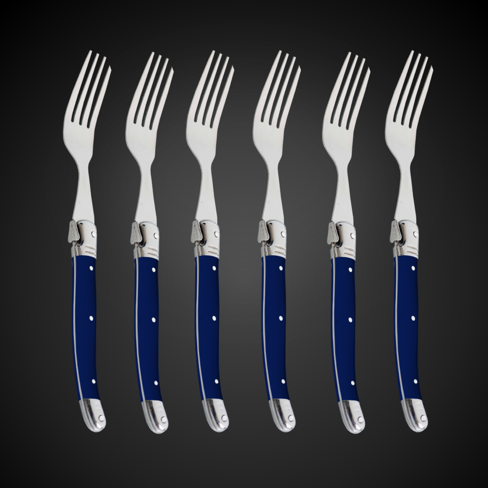 Conjunto De 6 Garfos Laguiole Luxo Em Bandeja De Madeira, Azul