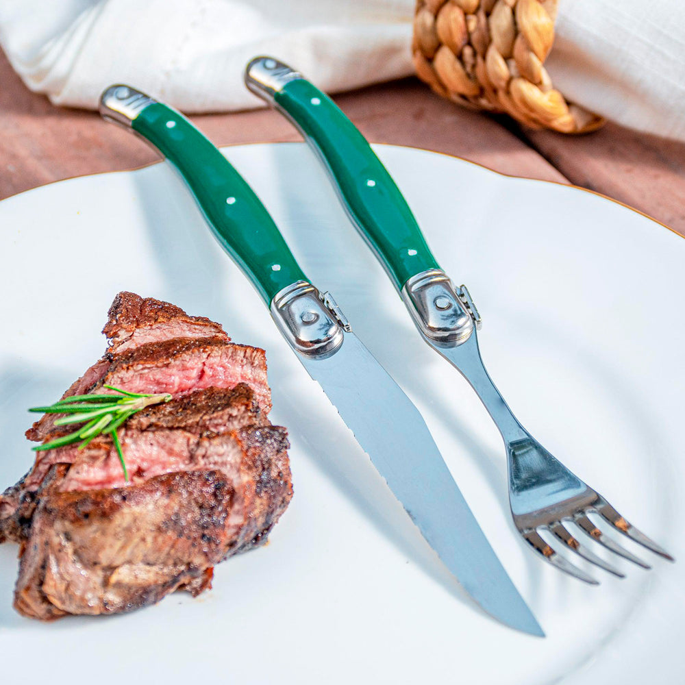 Conjunto De 6 Garfos Laguiole Luxo Em Bandeja De Madeira, Verde