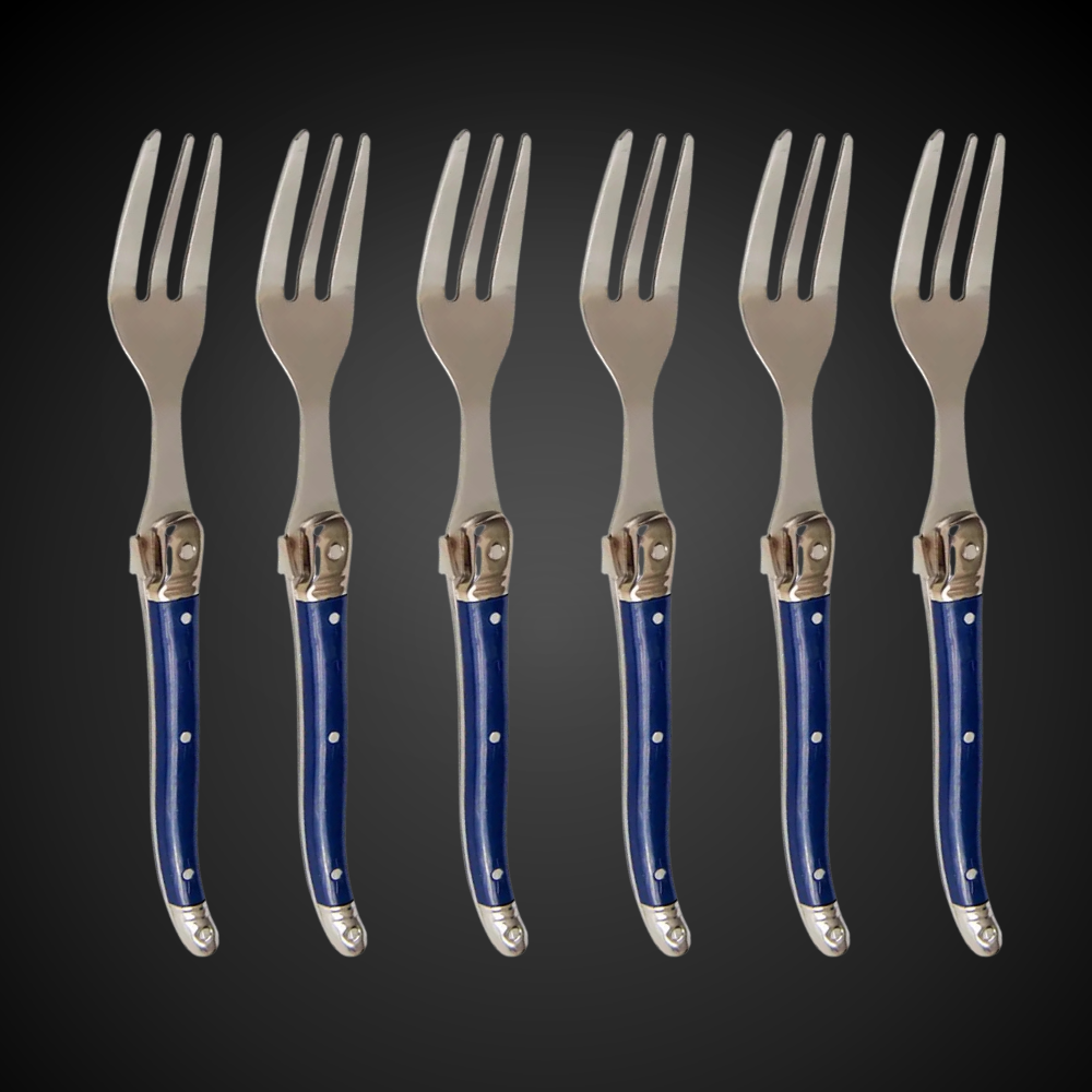 Conjunto De 6 Garfos Sobremesa Laguiole Luxo Em Bandeja De Madeira, Azul