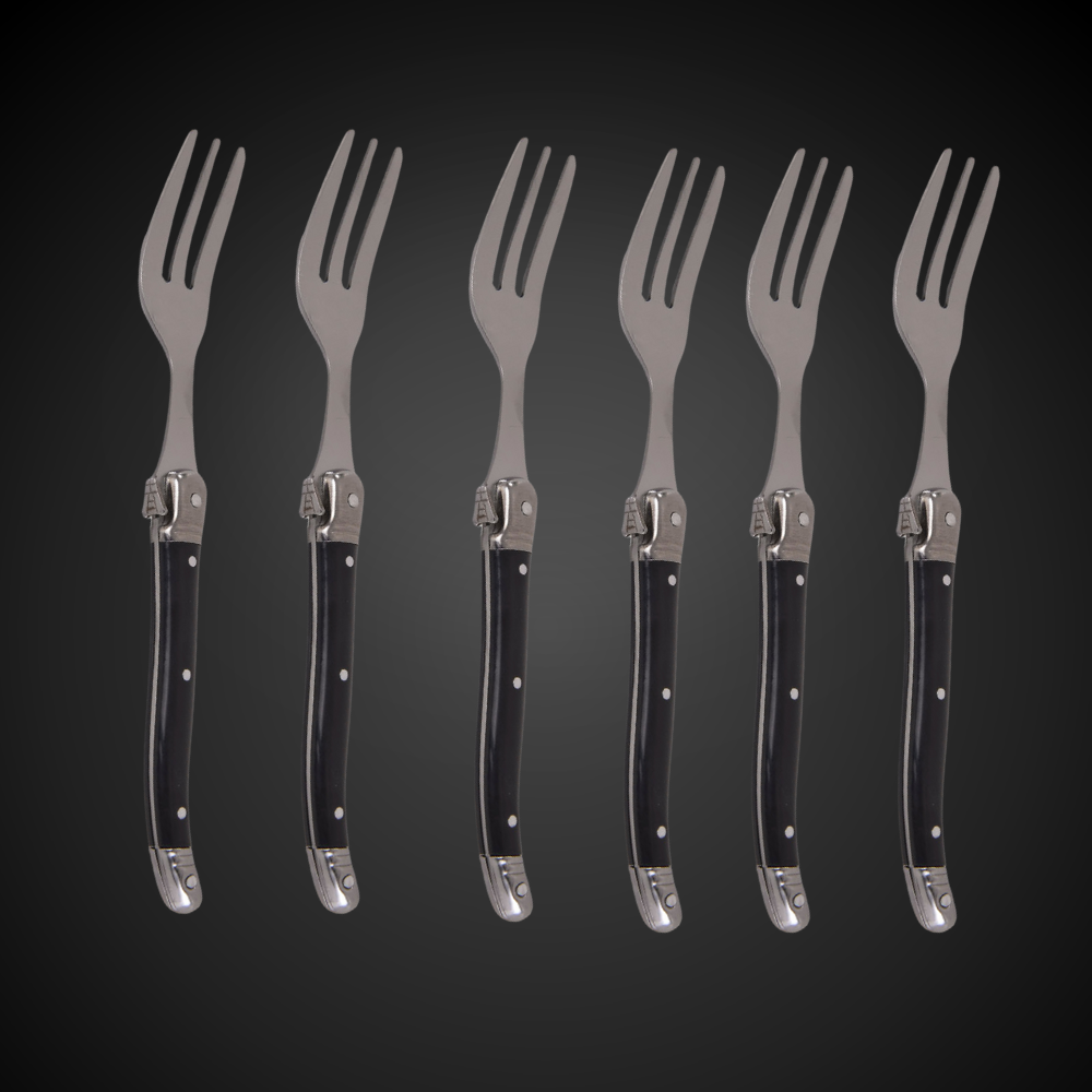 Conjunto De 6 Garfos Sobremesa Laguiole Luxo Em Bandeja De Madeira, Preto