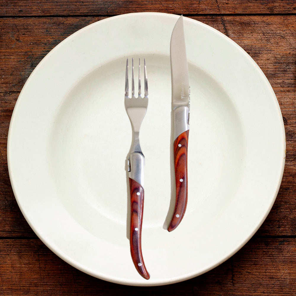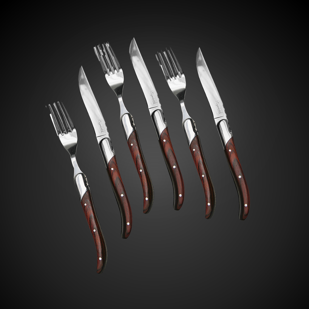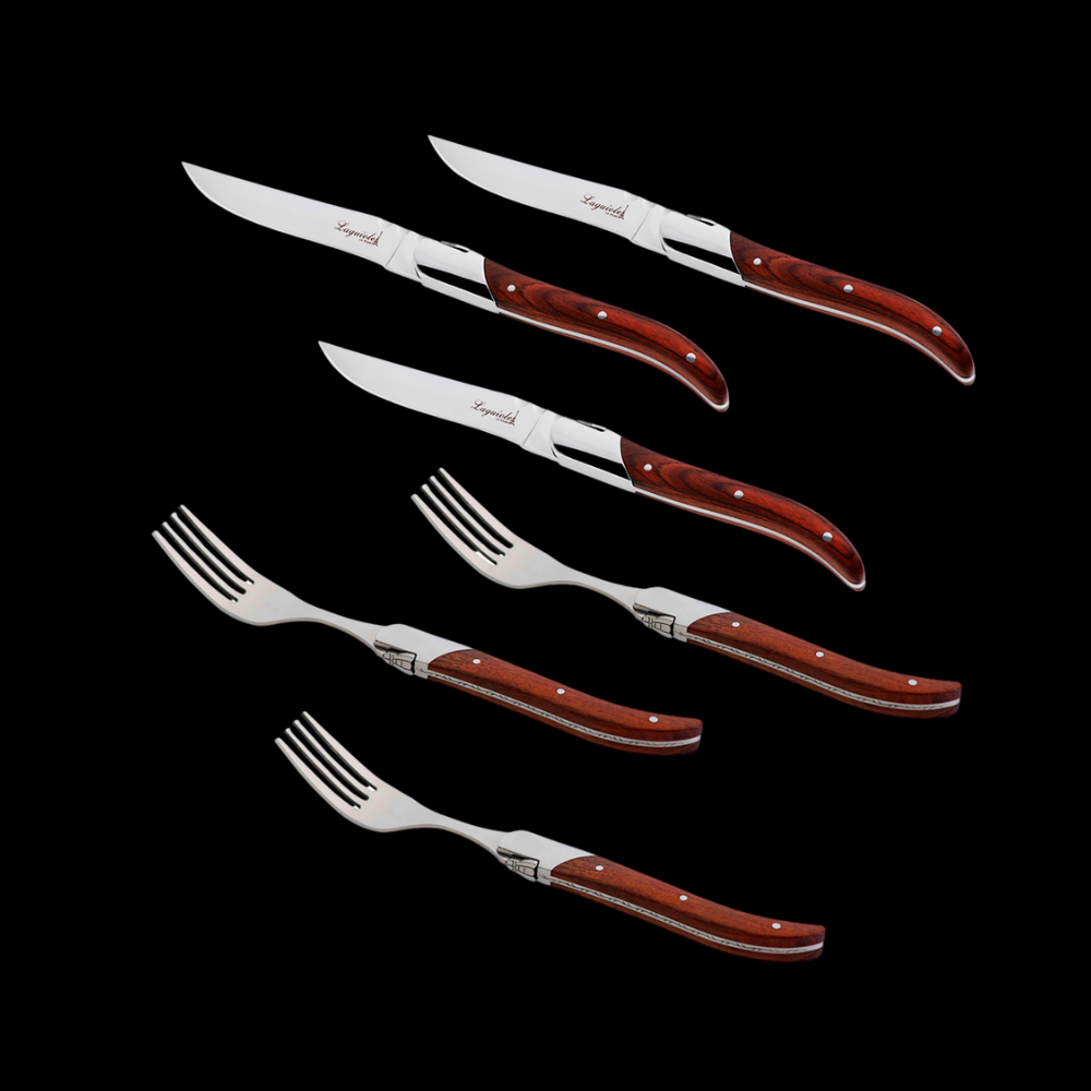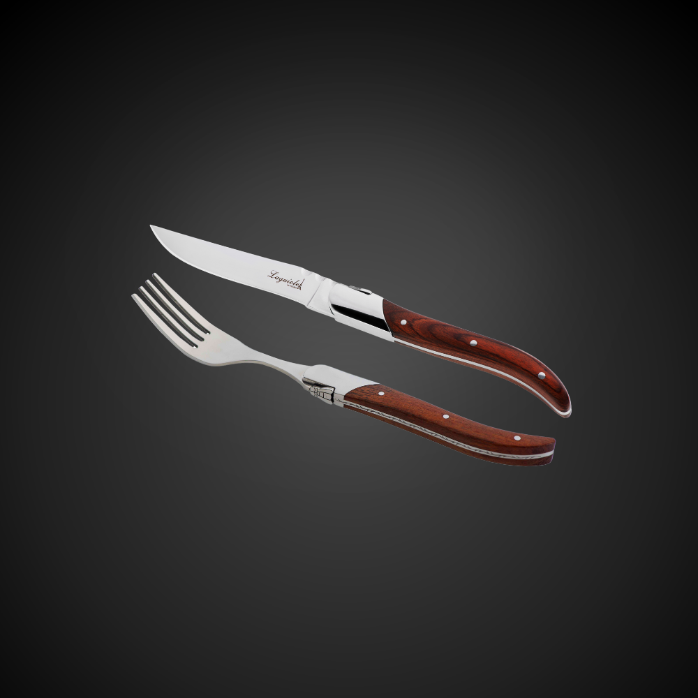Conjunto Faca & Garfo Laguiole Ultra Premium Com Caixa Para Presente, Madeira