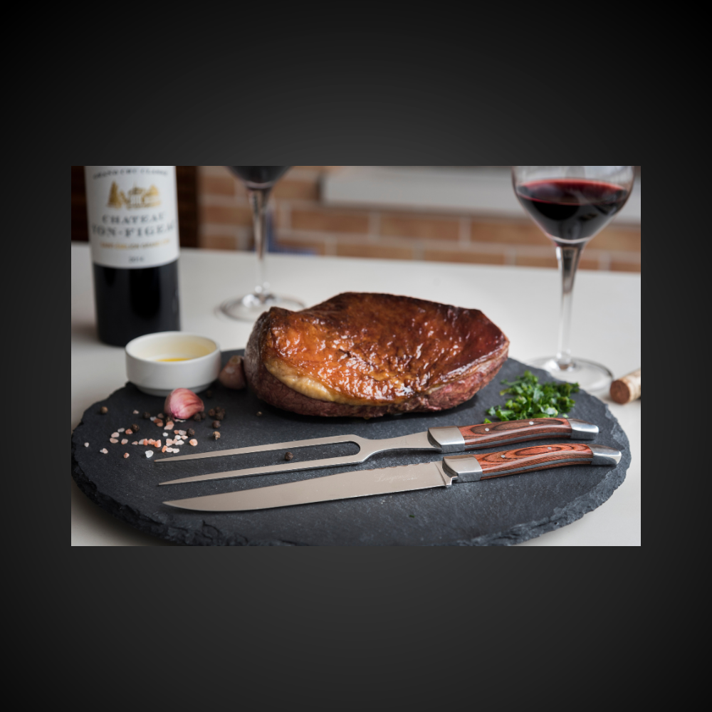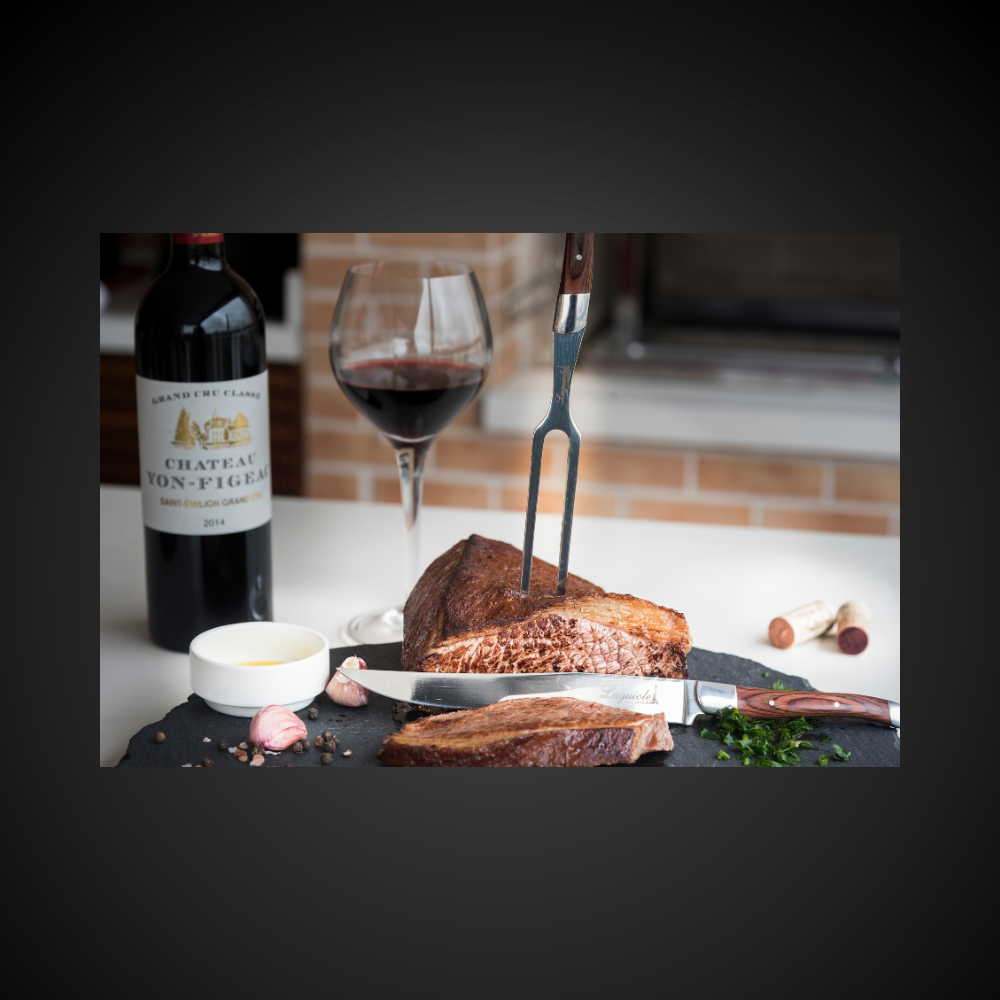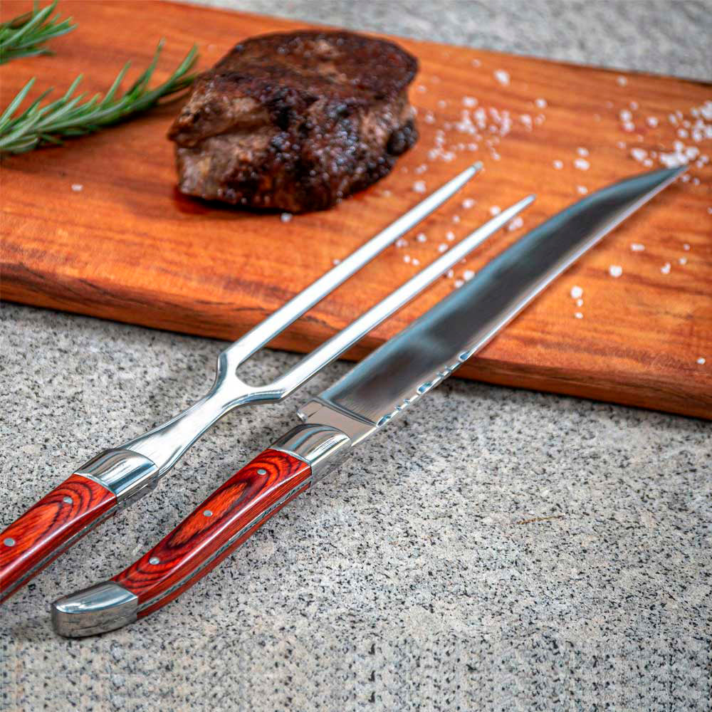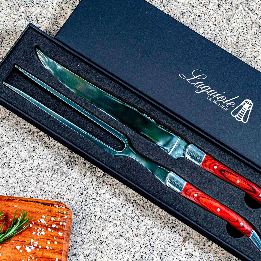 Faca & Garfo Para Destrinchar Laguiole Ultra Premium Com Caixa Para Presente