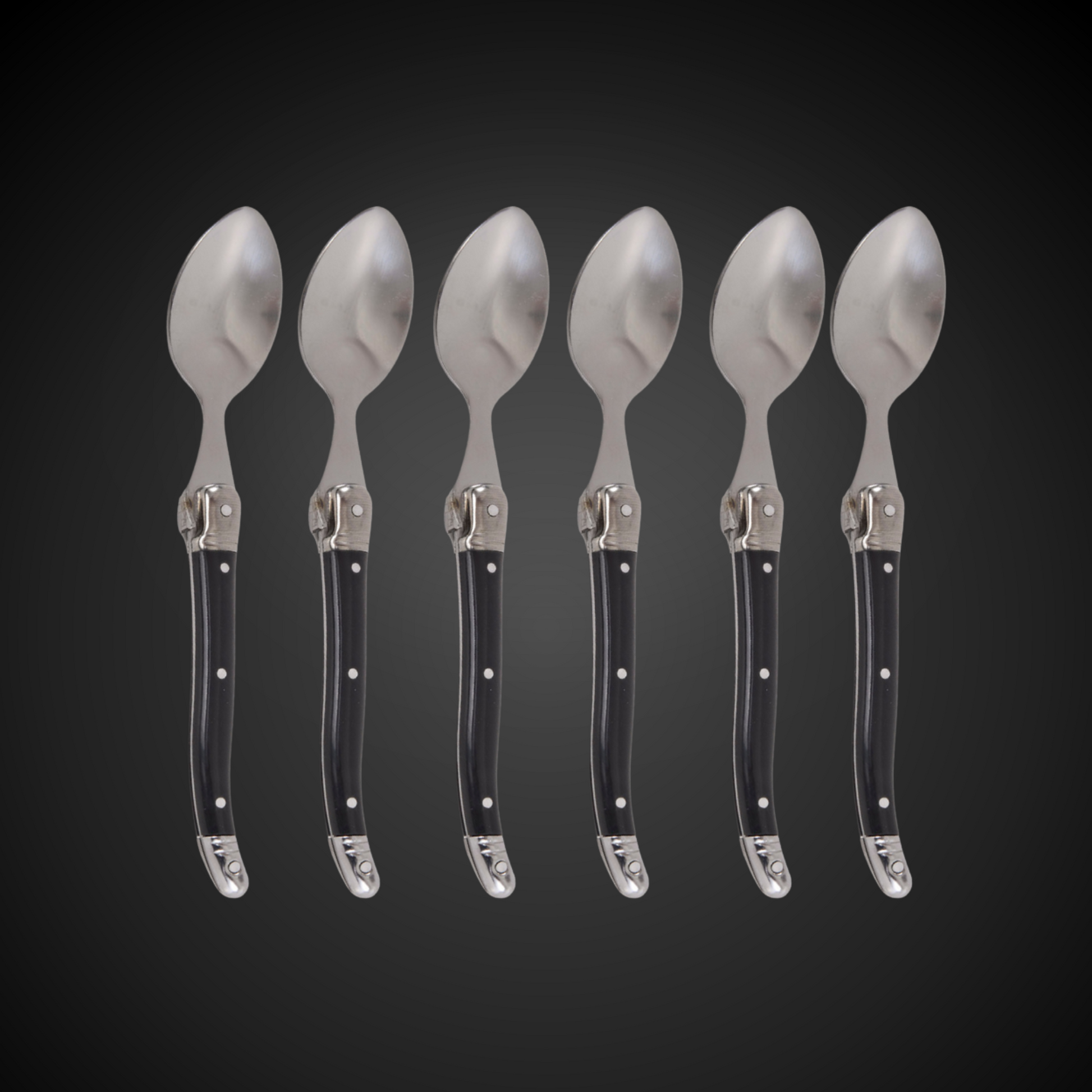 Jogo Colheres De Sobremesa Laguiole 6 Artigos Em Bandeja De Madeira Preto